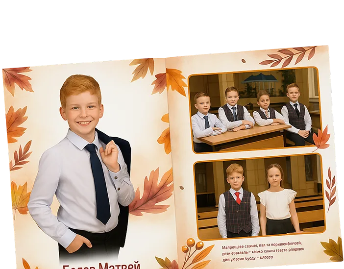 Мы всегда детально согласовываем проект с каждым заказчиком, чтобы итог полностью соответствовал ожиданиям и радовал как детей, так и родителей. Слаженная работа команды — от фотографов до дизайнеров — направлена на то, чтобы альбом стал хранилищем теплых воспоминаний о школьной дружбе, первой влюбленности и мечтах о будущем.