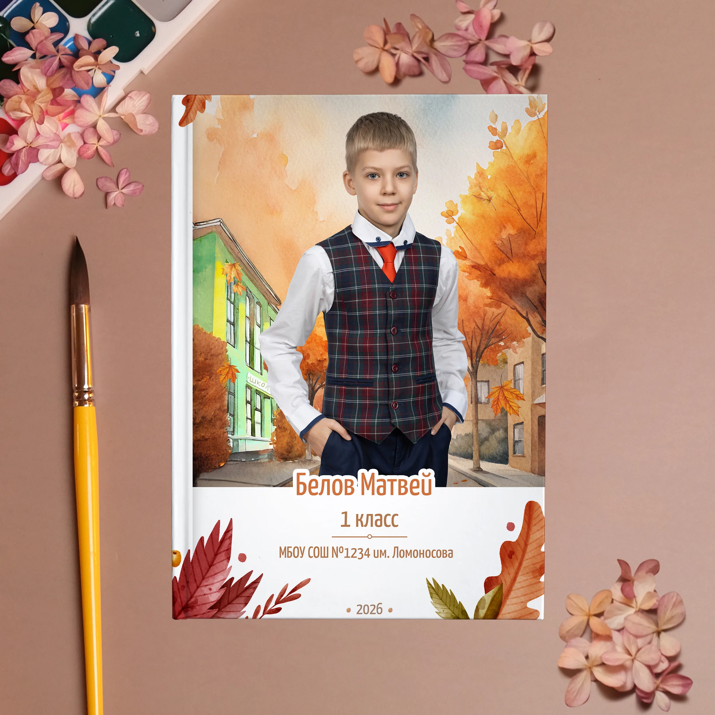 3ий разворот и далее — личные страницы учеников (портретная фотография, информация об ученике и 2 фотографии личного репортажа)